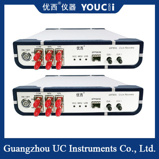 Le CDR U9720A (Module de récupération d'horloge) est principalement utilisé pour fournir un signal de récupération d'horloge dans l'environnement de test sans horloge de déclenchement, afin d'utiliser l'oscilloscope d'échantillonnage pour tester le diagramme de l'œil optique de l'appareil. L'application typique est le test des équipements de réseau optique ou du produit BOB dans l'application PON. Étant donné que le dispositif photométrique lui-même n'a pas de sortie d'horloge de division de fréquence, il est nécessaire de récupérer le signal d'horloge pour déclencher l'oscilloscope d'échantillonnage lors du test du diagramme de l'œil optique.